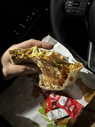 Read moreThe food was good ONCE WE GO IT, particularly the new & improved seasoned fries, & especially the bacon grilled quesadilla (with steak). But it took us 35 minutes to get our food. The drive-through was super-busy, so we went inside, & once we ordered we were told by someone from the kitchen it would be about 5-6 minutes (because they were busy, no problem). Sat down, waited, & waited, & waited. People who came after us were getting served (with a wait as well, to be fair), but leaving with take-out. I saw the woman who took our order look over@our empty table, noticeably exasperated, went to go talk to the guy from the kitchen. Waited some more. Finally went to the counter, waited some more, & after 5 minutes FINALLY got our food. They were very busy & we were trying to be very understanding & patient, but 35-40 minutes for a dine-in of "fast food" is utterly ridiculous. Maybe we should've just got our $50+ returned, but we were hungry & didn't want to go driving again somewhere else. Will probably avoid this...