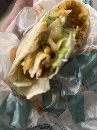 Read moreLitterally the worst of the taco bells. Ordered Crunch Wrap supreme, fry surpreme, and chili cheese burito, and a pop. They were out of Taco Bell sauce cashier confirm that they are out of mild and hot sauce. Asked if they had orange pop, she said, no but they have Crush you pour. Customer ahead of me got lime sauce, and mild sauce. Asked for the same and the guy acted like lime didn't exist, asked 3 times. Split the food up at home, and the fry surpreme had about 1/4 of the toppings you'd expect, crunch wrap was stale, lacked taste and was bland, again little toppings, even with the mild sauce, and the chilli cheese burrito was trash, all bread for 1/3 cheese 1/3 and a gob of meat paste with sauce at the bottom. The only good thing was the pop. So...
