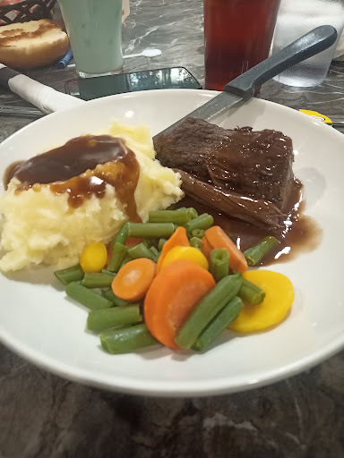 Edit; Gave it another chance. Beef shortrib was dry, "seasonal vegetables" was a sad heap of microwaved freezer carrots and beans. Mashed potatoes were fine. I think we're done coming here, do not recommend.