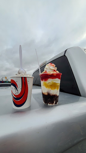 Read moreI typically don't expect much from a local ice cream shop. They usually offer the bare bones of ice cream options: ice cream cones and maybe sundaes. On first glance it appears that Twisters tried to compete against Dairy Queen, as the menu selection shown on the wall was quite varied. And, based on the way the store was inside, it appears they didn't win. The lighting was dark on the one wall, and the service was okay at best. It has the appearance that they may not open their doors one day...that they are just barely hanging on. I do hope that they stick around. We ordered the Upside-down Banana Split and a Twister....and it...