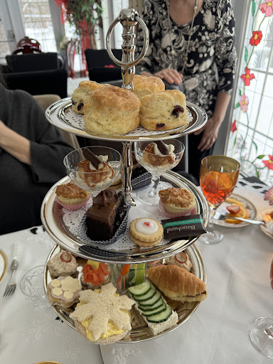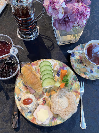 Two friends and I spent a very enjoyable Sunday afternoon having High Tea at the Golden Teapot!! The minute we drove through the gates to head up to the Tea House it was simply "love at first sight" and walking into the Tea Room itself was very calming...an oasis. The soft, popular, instrumental music in the background and the barely heard clink of china above the gentle murmur of the other 15 guests were soothing and gratefully welcomed. Linda, the person who served us, was an absolute sweetheart and couldn't do enough for us. The Teas were wonderful, freshly baked scones with fresh peach jam and clotted cream, sweets, crudities and freshly sliced fruits were to die for! Afterwards we visited the Art Gallery upstairs and posed for pictures outside (Tyler the young assistant helped take some beautiful pictures for us) among the splendid floral art sculptures created from so many different coloured flowers. I returned home to tell the rest of my family that we simply have to go back again to experience this amazing soul soothing event. Keep up the good work Linda, Tyler and the gentleman who helped bring all the wonderful edibles to our table, and thank you for a wonderful afternoon!! We will...