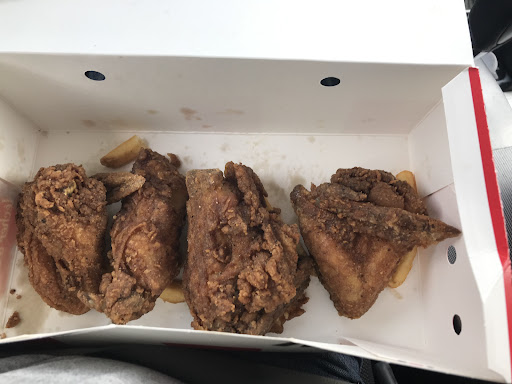 Read moreMay 2, 2022 decided to go inside for a change instead of the drive thru. When I was ordering the person behind the counter said it will be 15 minutes for the chicken - I thought I can wait at least the chicken will be fresh and hot. This was 6.22. 15 minutes roll by - I can see them serving the drive thru customers - nobody comes to the front of the counter. Another gentleman had been waiting before me and I can hear him complaining that they always serve the drive thru first. I can say I have done the drive thru and it is not very quick either. 6.45 I start to stand right in front of the counter - no body comes finally 6.50 the girl looks at me and sees that I am annoyed she tell me the drive thru has been crazy - I am ready to cancel my order and she says it will be right out. Finally at 6.56 I get my food. Get home the grease had soaked through the box and bag - it was not very good. The pieces were really odd shapes and sizes not normal chicken pieces like they used to be. No apology no sorry just some really...