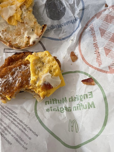 Facts: 1.A sandwich with no bacon variant would never have bacon unless it’s an accident. 2.If there are no strips of bacon it must be leftover from the grill or PURPOSELY sprinkled on. 3.If it’s an ACCIDENT it would not only be ON TOP of the sandwich secured by cheese so it wouldn’t fall out. 4.After putting the Top Slice Of English Muffin there would not be bacon sprinkled ON TOP by accident, that is not a thing! McDonald’s does not randomly garnish the tops of their sandwiches.