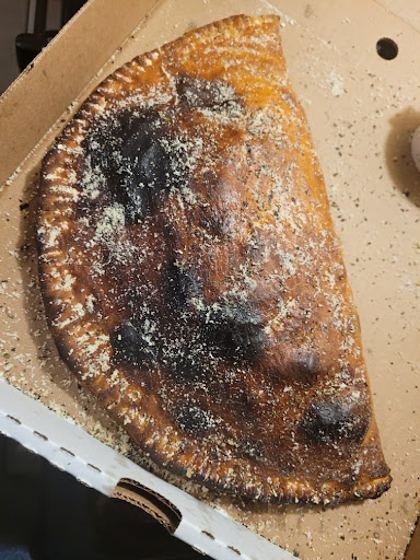 Update it seems that the staff feel that this is a perfectly good panzerotti. Other than the fact that the burnt part was covered up in the store with an obscene amount of parm so it wasn't noticed in store just how bad it was. Was flat out refused a replacement over the phone and staff told us that any bad reviews we posted anywhere would just be taken down.
