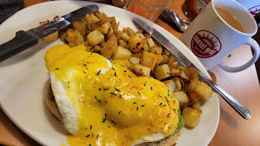 Read moreMy review might be as confusing as the experience. I literally waffled about how I felt about this sunset grill the ENTIRE time I was there. There were points I was ready to walk out and points where I felt like it was kind of good. We waited almost 10 minutes in a cramped doorway (because they don't allow you to seat yourself - even though it was a weekday and the restaurant was quiet) and while we waited, getting jostled by people leaving the staff made a concerted effort to avoid making any eye contact with us for any reason. They didn't acknowledge us, just pretended like we were dead. The owner or manager was behind the counter and without even a glance decided to make a phone call, rather than bothering to put us at a table. I was ready to walk out when a waitress came up, apologized and seated us. This particular Sunset Grill carries gluten free bread, so I placed my order and it was there in a flash. I was getting pretty happy about the entire experience, until I went to pay. Again, the manager or owner or whatever he was, was just as flippant and rude as he was while he ignored us to make a phone call when we first walked in. I guess all I can say is "The food is pretty good, they carry gluten free bread and if you plan on going here, bring a lawn chair so you have a place to sit while the staff...