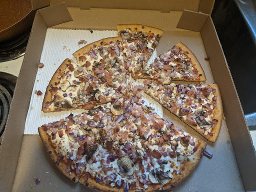 Read moreI ordered two pizzas tonight one large three topping gluten-free pizza and a medium three topping pizza. Both pizzas seem to be cooked fine and had a great amount of toppings. Two problems. I had it delivered and it was delivered through doordash and you can see in the pictures how the large three topping gluten-free pizza arrived to me. It was all messed up slide all over the box. I am not sure if this is doordash's fault or if it is the pizza places for but I would highly suggest the pizza place contact doordash and correct this issue. My only other issue is last time I ordered a large gluten-free pizza the girl that I purchased it for said it was dry so this time I specifically ordered extra sauce but she says it is still very dry I'm not sure if the extra sauce was ever...
