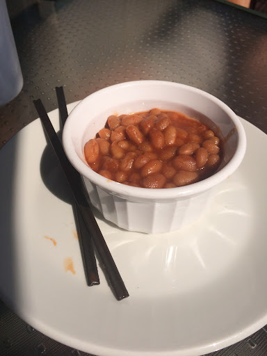 True to her foreboding the view from the patio was amazing and the food was ... aweful. She had experience and opted for the soup and shepherds pie instead of breakfast stating that “The food is really bad but usually his soups are good”. As it turns out that was a bad choice as the soup was described as “tasteless mush” and the shepherds pie was barely warm from being microwaved and remained completely cold in the middle. Two of us ordered eggs over easy with the accompanying meat, home fries, toast and beans. Both meals arrived without beans which I did not notice till later (see details below). I must admit that my meal was ok and comparable to any other dive breakfast restaurant. My friends breakfast however was a different story. His toast was dry and old and was not even warm enough to melt the butter which had been applied. His bacon was extra super crispy (although not ordered that way) and cold and dry as if it had been sitting out for a while. My partner (The fourth in our party) was looking for a health alternative but there really weren’t many possibilities so she opted for poached eggs. When given the choice she stated that she would like them cooked to medium however they came out runny. Her toast was as above, cold and seemingly re-buttered. Sushi beans...? When I was nearly done my breakfast my friend commented that they had forgotten the beans. After his questionable culinary experience he was not interested however I felt that they were owed to me. I reminded the waitress about them and she promised to right the wrong. Good to her word the waitress dropped a small portion cup of beans on her way past our table approximately 10 minutes later however in the mean time she had cleared away all of our cutlery. Fearing that my beans would become cold and less flavoursome, and with no waitress to be found I felt the need to quickly improvise. Not wanting to eat with my hands and risk appearing uncouth I fashioned a set of chopsticks from available coffee stir sticks. My impromptu MacGyver lacked efficiency but at least I was able to sample the dish. They were regular canned brown beans but at least they were warm. Summary: Awesome view but 3 out of 4 patrons surveyed said the food was terrible. Mine was adequate. The coffee was palatable however we all agreed that the small garnish of watermelon on our plates tasted most excellent and was the highlight of our gastronomical experience. 4 for 4 thought the view was awesome but we all found the wait staff to be slow and lacking in attentiveness and accuracy. We did receive a discount on our bill after pointing out the shortcomings to the waitress however when we asked to speak to the owner/chef we were told that he was too busy to talk to us. Business must be good however in all honesty the Restaraunt did not...