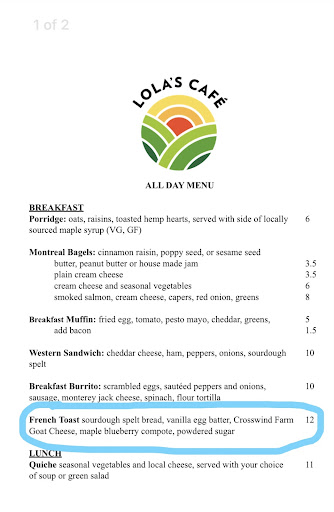So now not only was part of my breakfast MISSING - the compote - but I was left with French toast, goat cheese and maple syrup? Isnāt the compote supposed to complement the goat cheese? Itās like ordering a prosciutto arugula pizza and asking for hot sauce then the waitress coming to pick off your prosciutto in exchange for the hot sauce. If the menu clearly says āprosciutto arugula pizzaā, why are you taking one of the toppings off ?!? Needless to say, this was mortifying. Good customer service would have just given you the damn maple syrup and not have asked for one of the toppings BACK.