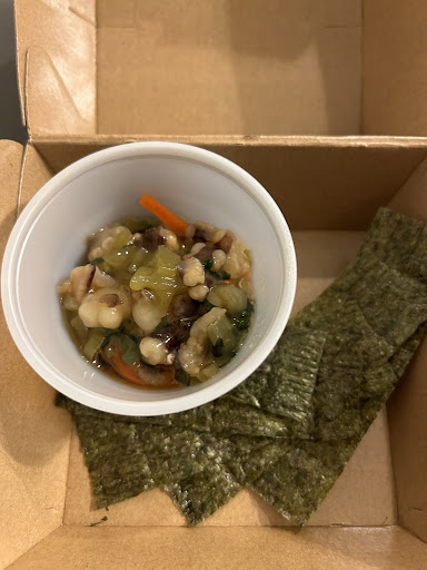 Soft shell crab. Lack of flavour and a bit too crunchy for a soft shell crab to my liking. Tako wasabi. Pretty good, not slimy. Salmon and tuna sashimi. Decent size and fresh but could use a bit of a presentation even though it’s a take out (all sushi places should STOP putting lemon slices near sashimis, they literally cook the outside of whatever fish it touches). Salmon, hamachi, chopped scallops, tamago, albacore toro nigiris. Fresh but the toros missing that buttery taste. Spider roll and futomaki. The futomaki was pretty good. The spider roll was a bit off, maybe because the softshell crab was a bit off. Deep fried poached egg. Surprisingly pretty good, I actually enjoyed it. I could snack on a couple of these. Asari garlic butter. It was pretty bland even though I do smell the garlics. And what’s with so much broth? It’s like a guppy fish swimming in the ocean. Beef teriyaki with rice. The rice could be softer and the beef could be less dry and slightly thicker so it wouldn’t be like eating beef jerky with rice.
