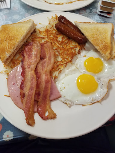 Read moreFirst time going here.. will definitely be the last. Went here based on a 4.3 star rating. Wasn't in there a minute and the waitress asked if I was ready to order...i asked for a few minutes to go through the menu and I told her it was my first time there. Less than 2 minutes later she was back asking if I was ready. Based on pictures and the reviews on Google, I went with the Farmers Breakfast... it was a big plate of food.. but tasteless. The sausage looked like it was cooked earlier and reheated. It says it comes with ham... it looked and tasted like bologna. Meanwhile the couple behind got the same rushed treatment. They ordered a coffee as soon as they walked in.. they asked for a couple of minutes to look through the menu.. they waited 15 minutes for her to come back. They got fed up, paid for their coffee and left. Also, the entire time i was eating.. not once was I asked if I needed anything or how the meal was. I had to wave someone down to...
