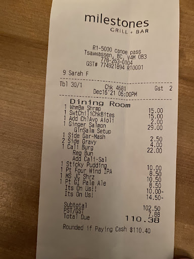 Read moreI recently visited Milestones Tsawwassen for brunch with my mom, and unfortunately, it was one of the most disappointing experiences weâve had â especially compared to other Milestones locations like Surrey or White Rock, and other restaurants like Earls and Cactus Club.