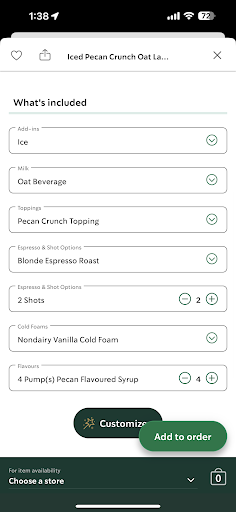 Today I went through the drive thru and ordered 2 iced pecan crunch oat lattes. My sister and I tasted them and were grossed out by how salty it was.. we went back and asked politely for them to be remade because they were too salty to drink. We thought it was supposed to be made with non-dairy vanilla cold foam.. but there was a younger woman working that rudely interrupted saying that the drink is made with salted pecan cream cold foam. She and her coworker continued to talk amongst each other about how the drink is supposed to be made with the salted foam while we were just standing there waiting.. I wish I stood up for myself & showed that rude girl the ingredients that it says on the app which clearly don’t include any type of weird salted pecan foam. It is supposed to be non-dairy vanilla cold foam with pecan sugar topping.. so, if you’re lactose intolerant and wanting to enjoy this oat based dairy-free beverage, make sure there’s no pecan salted foam (even though the default is already made with non-dairy...