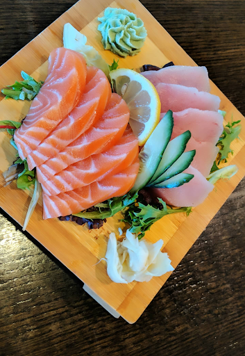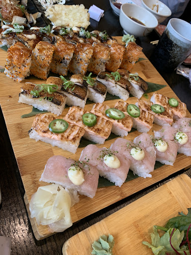 The Salmon and Tuna Sashimi tasted fishy and the tuna had a mushy texture. The Oshi Negi Toro was also mushy and had too much sauce on top (possibly to cover the fishy taste). The Salmon Oshi and Chopped Scallop roll was passable but we've had better from other restaurants.