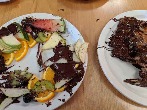 Chocking hazard and poor presentation technique on plate! This is one of their waffle plates on their menu. When it first comes out, it look okay but when you cut in to take a biteful, there's so many fruits with their peels on them (pineapple, watermelon, kiwi, oranges) hidden underneith that it just makes the whole plate unplaisant. I really wanna to like this on the first try! Spoke up to their waiting staff, who are super profesionnal, and they made the comment to the kitchen. The walls are thin, and we heard what the kitchen said. So this gets 3 stars for: 1 for location, 1 for professional waiting staff, and 1 more for the little quaint museum on the side. In recommendating this place, I would tell anyone ask for the chocoloate on the side for all plates that come with chocolate. Not going back...