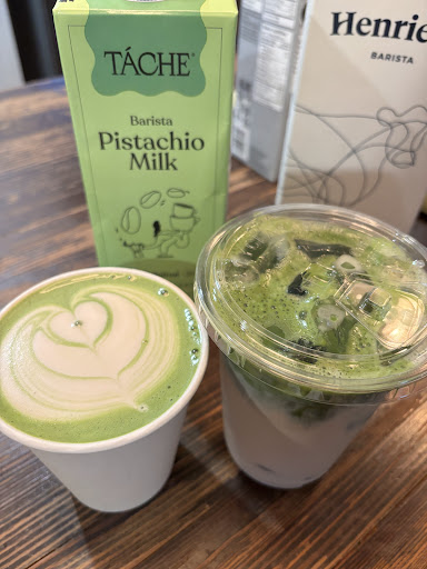 It's probably the nicest coffee place decor I have seen. I have been to a lot of cafes! The upstairs area has various types of seating areas, and it goes from bistro to cozy study room vibes. The one thing missing would be a changing table for babies. As for food, I love that there are so many vegan and gluten-free baked goods available. The brownie is next level good. The matcha is delicious, and there is an option to have unsweetened or sweetened. The only thing missing is a gluten-free and vegan meal option. I only saw a vegan sandwich and salad, but not gluten-free. Maybe I missed it. Definitely will be stopping by every time...