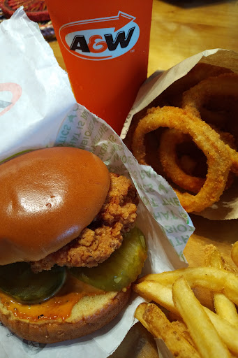 First of all i would like to say that A&W is one of our favourite fast food places to go. This being said we have been to many other A&W restaurants and have been become accustomed to certain things such as not being charged 60 cents for their spicy mayonnaise. Out of a dozen restaurants, this is the only one that charges for it. When we were told that we declined the spicy mayonnaise. Now here is the biggest issue we had. We order take out. We used a coupon for two mozza burgers with poutines trio. We asked to change one poutine to an onion ring. They messed that up and gave us two fries. We pointed that out and they corrected it. Next we ordered a mama and papa burger trio. They messed that up as well. But unlike the previous order we didn't catch that error and only noticed it when we got home and sorted out our meals. Yes you guessed it, we were short a french fry. We ate our meal short a fries as we were starving. Now i called the restaurant after our meal. Explained what happened. The lady said to me sorry about that come back and we will give you a French fry. I said to here we already ate and i would like a refund for the missing fry. Again she repeated just come back and we will give you another fry. I calmly said again but in French that we completely finished our food and we would like a refund for the missing fry. Only then she understood. Now logically we were charged for a fry. To go there and back home would cost me more in fuel to get said refund as explained by my wife. So in the end we never went. Lesson learned. Check your take out order. As improbable as it may seem some people will make the mistake of forgetting that each trio...