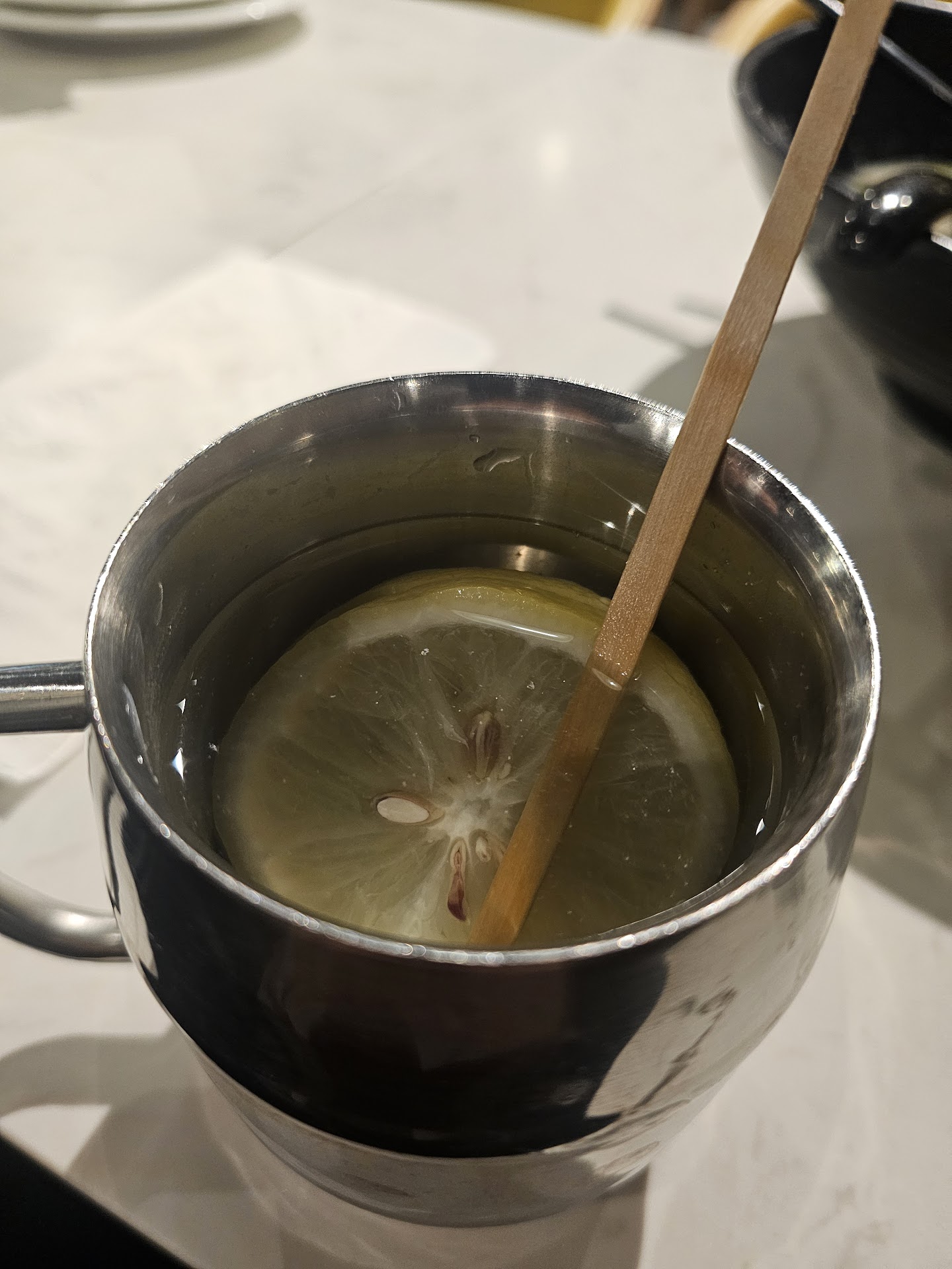 The Lemon Water (H5) that also came with it was terrible. (I didn't think that was even possible) I don't know if it's the cup, but it tasted barely acidic, and it had a weird metal taste. I didn't even want to try adding sugar to see if it would improve... (the drink includes 2 sugar packs on the side) (0/5)