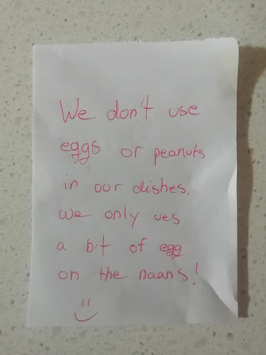 IMPORTANT! IF YOU HAVE ALLERGIES, BEWARE! Food: delicious! 5/5 stars. Portion size: huge! 4-person combo will satisfy more than 4 people. I ordered via SkipTheDishes. I was very specific about my allergies. I figured one of the battered things may have eggs and I asked them to simply write on the container for anything that had eggs so that I could avoid it. Asked for an extra order of naan (I explained how I love naan but one restaurant I knew of put eggs so again, just wanted to make sure that there were none here). Notice the note I got: nothing has eggs except for the naan (also - was it an error or were eggless naan actually brushed with egg?! Meaning, they could have chosen not to put egg on so that I could enjoy it, but they didn't? I am not sure.) Anyway. When the order arrived, I opened up a salad and found it covered in a creamy looking dressing - by experience, this often means eggs. I decided to call the restaurant to double check. At first the guy is telling me there is no egg in the dressing, but then he said "you mean the mayonnaise?" Uh ... duh! The fact that you used the word mayonnaise ...! Anyway - there's eggs in this. He checked with the kitchen. And then he mentions eggs in the kebab, eggs in the onion things .... If I hadn't phoned, I wouldn't have known any of this because whoever wrote the note (see attached photo) clearly states there are no eggs in any of these dishes!! Imagine if I had just eaten a bite of meat before calling! Allergies are important, and can be very dangerous. I don't want to give this restaurant a bad review (if you're just looking for good indian food, you will not be disappointed) so much as warn fellow allergy sufferers like me. Some restaurants take allergies seriously. People at Delhi Kabab have a lot of...