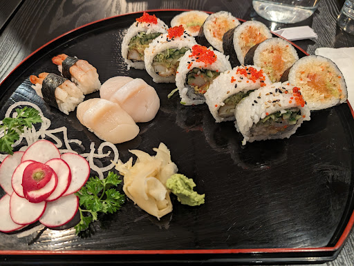 We had to wait for over 45 minutes for the food to be served but we did however order over 100 pieces so that might be the problem. The service was polite, but our waiter seemed quite unhappy and impatient while they were serving us. The food itself was pretty good. The ingredients were fresh and the amount of fillings were quite generous. The food was quite filling but I do find it really expensive compared to a lot of other sushi restaurants, around 25$ for 15 pieces. Even though the food was quite enjoyable, the dining experience was a not as enjoyable because we were only hearing people working in the back speaking very loudly through...