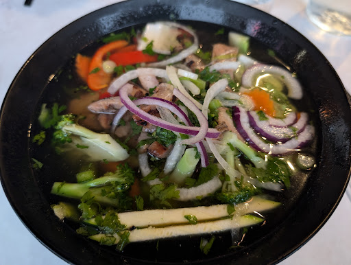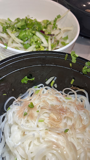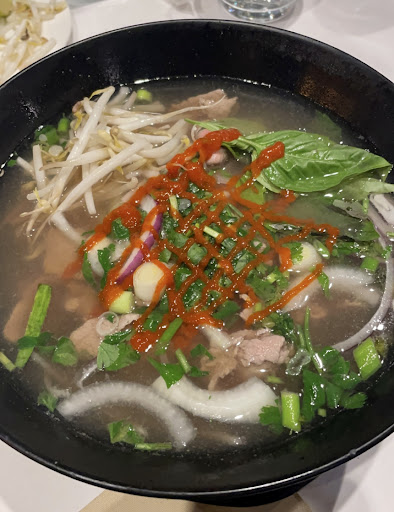 We were initially greeted by staff that didn't seem really welcoming but our waitress was very friendly and smiling throughout our meal. The interior decorations are a lot fancier than the common Vietnamese restaurant and it was a pleasant change in my opinion. The dimer lighting, the low background music and the fancy table settings made the dining experience so much better. The food itself was tasty. The soup I had was flavourful, the toppings were very generous and the ingredients were all really good in quality. I do however feel like the portions of noodles and rice are really too small and the extra portions are 2$ each for the bowls of rice. The grilled chicken was also lacking a bit in grilling flavours but the rest of the food was pretty good. The average price is acceptable but the portions once again for the rice and the noodles are a bit small. The toppings do compensate...