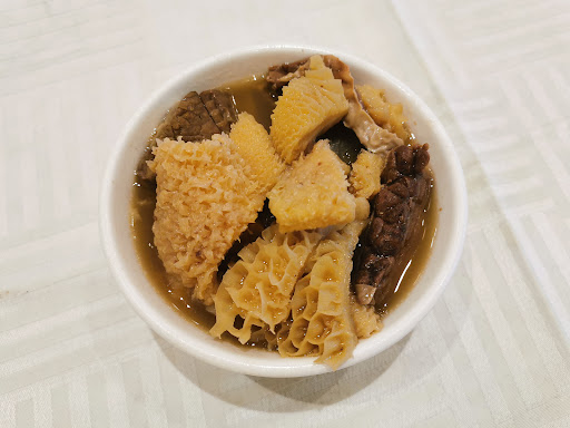 Read moreWe went for dim sum on a Thursday afternoon, arriving around 12:30pm. We were seated very quickly, as we were only 2 people. The restaurant was already pretty packed! Overall, the food was very good, a little disappointing to receive certain dishes, such as rice paper rolls with shrimp, peanut butter dumplings, har gow, etc. dishes that were room temp or pretty cold. Many dishes we got, such as char siu bao, beef tripe, pork and veggies wrapped in curd, were very hot and delicious! The rice paper rolls with shrimp was very tasty despite being room temp, the rice paper was rather thick, which occasionally overpowered the taste of the shrimp, the shrimp was very plump and juicy! The wait time between the first dish and the second was the longest, being at around 10-15 mins wait, but once our second dish came, all the other dishes came within a 30 seconds interval. The har gow was good, it was brought to us at room temp, it would have been better if it were hot. We did ask for soy sauce and never received it. We also got Siu Mai, and that arrived at the same time as the har gow but it was much hotter than the har gow was. The beef tripe was smoking hot, very juicy, flavourful, and just the right amount of crunchy. There was a lot more than I was expecting! The pork and veggies wrapped in curd was piping hot, burning our tongues as we expected it to be just as cold or room temp as other things we received, but we were pleasantly surprised that it was hot and so flavourful that you don't need soy sauce for it! The peanut butter dumplings arrived last, and it was by far the coldest. Not even room temperature, just cold. We ended up having 1 bite each, then took it to go so that we can warm it up at home! The food was very filling, and they very quick at removing our plates whenever we finished...