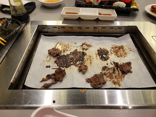 Food: BBQ itself was ok and came on time, but there wasn't a lot of variety (no Lamb, or better cuts of meat for the price we were paying). The ribs were just straight up chewy. Sides like ginger and Kimchi were good, but things like sauces were hard to separate since we couldn't find a waiter available to get a spoon. Takoyaki was as bad as last time I ate here, all starch no octopus. Similarly, the fried scallops tasted like fried starch instead. Sushi side of things the food was ok, except our side of the table never got our Sashimi.