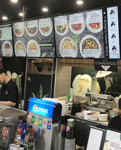 I am here now and will never come back here again until the attitude and food gets better. I love Thai express and this is my first and last time trying this location. I was bring my aunt to try it she is only visiting Canada. The lady at the front spoke to me as if I should have not been in there. Because I love Thai Express I ordered curry chicken and the lady used her glove hand that she has been using to touch everything to take put the vegetables from the prep area. Didn't say anything cause I know the food will be cooked. Any how they made the curry it smelt spoiled when we started to eat it. We tasted the chicken and found it was spoiled. I took it to the chef and he said he only spoke French before I could have a conversation with him the last at the front returns with her negative attitude to hear what I was saying and then said what is she to do. I said I would like something else she said chicken fry rice I asked if it's the same chicken she said yes so I got the shrimp fried rice. She wanted me to pay 50% of the cost I had to get my calculator and do the math with item price difference. Then the same chef who didn't speak English after putting too much Soya sauce in the rice turned with her and started to laugh after serving me. I should have reviewed this before going as we can see the reviews are all the same behavior. The owners of this location needs to do something about this as they can see with the span of a month there is over 5 complaints of inferiority in the food and lack of customer service which shows lack of value to the customer and their money. ...