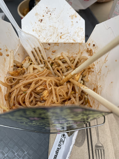 I bought two meals to go, then when I went to get the hot sauce and peanuts I saw they didn’t have the small cups with lids. I asked the cashier for 4 (2 for each meal) she gives me 3. This already annoyed me. Then I figured I’ll asked the guy who’s making my food for the 4th one, so I did. Then some random worker wearing thai express shirt runs up to me waging his finger telling me I took extra (in his broken English). I asked him if he wants more money, and then I told him I have two meals he shut his mouth and walked away, I screamed behind him asking if he wanted more money but by then he was already embarrassed and didn’t respond. I spent 30$ on two meals and when they had to give me 4 cups for two sauce and 2 peanuts he lost his mind! Cheap owner, garbage service,...