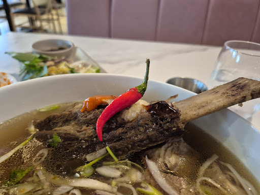 Read moreThere were so many things I wanted to try out but each item was quite expensive, around 20-30$. So, if possible, it would be nice to be in a large group and just order various plates to try out more items in their menu. The food itself was great. The flavours were on point and the toppings were a great addition in flavours. The soup was clear and flavourful which made the noodles taste great in return. I wasn't a big fan of their fried ice cream however. The crust was too thick and it was pretty basic in my opinion. The portion was acceptable. Considering that the Pho Vui was 28$ before tax and tips, the portion was decent but I could have definitely eaten more, especially for 28$ a bowl. The pho is served with a large beef rib though so I guess it's a reasonable price. I would still say it's a bit more on the expensive side though. The service was great as well. Even though the waiters seemed a bit shy, they were quite friendly, patient and...