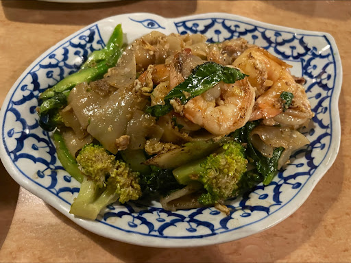 Now, the food. We dove into the shrimp chips with peanut sauce, which packed a pleasantly spicy punch. Following up with a plate of Pad See Ew with shrimp, the flavors were spot on. The Mixed Seafood Thai Green Curry and the Spicy Mixed Seafood dish both had that authentic kick you hope for in Thai cuisine.