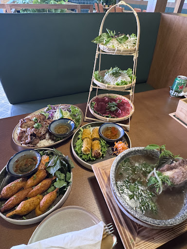 We ordered a variety of dishes, and every single one was phenomenal. The standout for me was the tower of fresh ingredients â a beautiful three-tiered display of herbs, noodles, and thinly sliced beef, perfect for assembling your own bowls of pho. Itâs interactive and adds a touch of elegance to the meal.