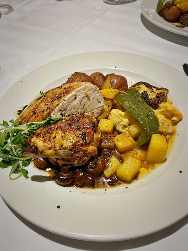 We sat at our table and waited about 10 minutes before any staff even acknowledged we were there. Finally, we were greeted by our unnamed Server with a quick “Merry Christmas” and, without any delay, he asked us what we wanted to eat, without asking our drink orders before hand. This made us rush to make our decisions and we regretted it. When our food arrived, we were not asked once if we were enjoying our meal or if we needed anything to make it complete. We were astonished on how lacking the service was. I ordered a steak, I was pleased with how it was cooked, however, the vegetables it was served with were stone cold. The food quality and lack of formal service made the prices seem outrageous. Entrées started at $40.