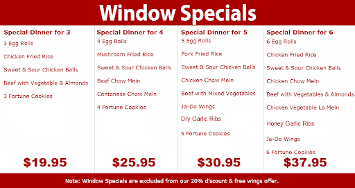 Apon arriving the look is very minimal, not at all inviting. The food was piping hot, but there were issues. Let me start off by saying they don't allow substitutions, so don't bother asking. Starting off with the food and taste of the food. Start we got combo dinner for 6, everything was piping hot. We will start in complete order of the food and taste. First was the egg rolls, these aren't your traditional egg rolls, they're smaller but pack a really delicious flavor. Next is the deep fried chicken wings, The wings were over battered and overcooked, leaving them with a very bad taste. Next is the honey garlic ribs, which while we're good in flavor had way too much liquid in the container. Next was the chicken balls, now most families this is a big staple for them. They were dry, small, and tasted just like seafood. Next is the beef with mixed vegetables, The vegetables were not cut uniforms so they weren't cooked properly. There was also a lot of liquid inside the container and very very little beef. Next is the battered shrimp, The shrimp were overcooked and very dry. Next is the Cantonese lo mein, the vegetables were very delicious in this dish but there is little to no noodles. Next is the barbecued pork fried rice, this came in a very small container I would say for a dinner for six it would feed maybe four. In conclusion I would give this food a 3 out of 10, for dinner for six This was a very small meal very little leftovers for a family of four. And the fact that everything deep fried was deep fried in the same deep fryer really left everything...