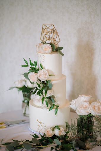Read moreWe were so happy with our wedding cake—it turned out exactly how we had pictured it! The florist left fresh flowers for the cake, and Christine arranged them beautifully on the three-tier design (along with our cake topper)