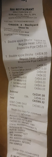 Read moreABSOLUTELY APPALLING EXPERIENCE! Discrimination, Insulting Service, and a Total Scam. AVOID THIS RESTAURANT! Overall Rating: \star\star\star\star\star (1 Star - If I could give zero, I would) Our visit to NAI RESTAURANT was an absolute catastrophe, a complete waste of our time and, crucially, our money. We came to celebrate and say farewell to my brother, and the occasion turned into a nightmare of hunger and sheer frustration. We arrived at 8:10 PM, extremely hungry, and relied on the \text{CA}\
