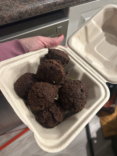 -began eating and noticed the chicken shwarma was very hard, overcooked and it tasted awful (dog food like according to my Daughter).. It also had an "off" smell to it, especially the odd piece that wasn't overcooked. It was definitely borderline bad.