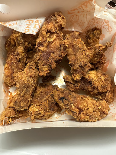However, not everything hit the mark. I also ordered a large portion of chicken tenders, expecting the same high quality as the sandwich. Unfortunately, these were remarkably bland. Despite their good appearance and texture, they lacked flavor, almost to the point of tasting like cardboard. The saving grace was the dipping sauces provided, which were necessary but underwhelming. They made the tenders just tolerable enough to eat. A second opinion confirmed my thoughts: the tenders had no flavor. I realized too late that I had selected the mild option; in hindsight, opting for the spicy version might have been a better choice. I would definitely recommend choosing the spicy tenders if you visit.