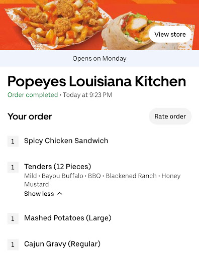 I recently revisited Popeyes on Brant and Plains Road in Burlington after a long hiatus, and my experience was a mixed bag of delights and disappointments. On this occasion, I opted to try their spicy chicken sandwich, which has been touted as one of the best among fast-food chains. Fortunately, it lived up to its reputation— the sandwich was absolutely delicious. The chicken was perfectly seasoned and crispy, and the spicy mayo added just the right amount of kick. Moreover, the sandwich was kept warm in a metal-lined bag, an ingenious touch that preserved its heat and freshness during transport.