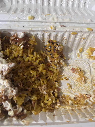 Ask to get layered white sauce ( the INFAMOUS white sauce ) some on the rice before the chicken and after.