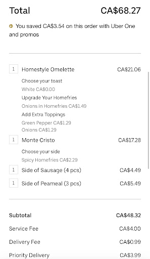 My weekly ritual involves ordering from Stacked Pancake House via Uber Eats, and it's always a delightful experience. The menu offers a wide range of breakfast items, but their omelets are a standout. What I appreciate most is the extensive customization options available— a vital feature for any breakfast aficionado. You can load your omelet with a generous variety of vegetables and toppings, tailoring each dish to suit your taste perfectly.