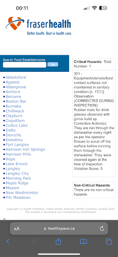 I did message Fraser health. Cuz someone should come and inspect this place. I got sick. And I wonder why.....