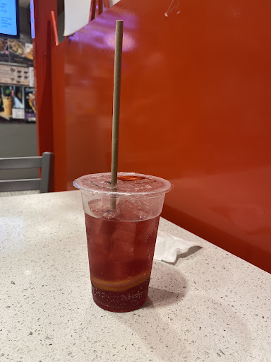 It was nice seeing bunch of photos to help deciding what to eat. I ended up picking Hainanese Chicken Laksa( without hesitation) in flat rice noodles with iced tea. Iced tea was the first thing that came. It was so yummy and refreshing. Noodles took almost forever to come as the staff was too busy handling take put and dealing with complaints.