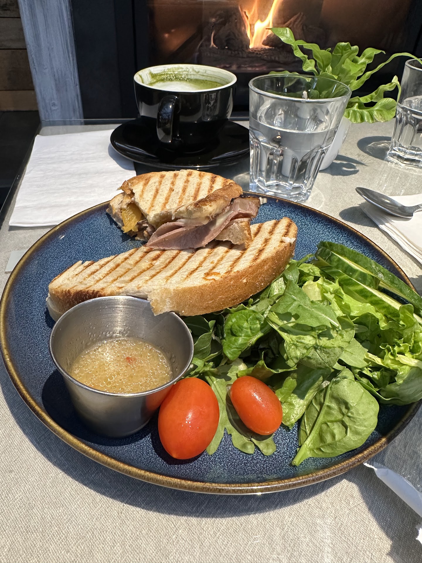 On a rainy day, I found myself seeking shelter at the Café at Mandeville, and what a delightful discovery it was! The café exudes a cozy vibe that made me feel right at home, especially with a fireplace near our table which added a touch of warmth to the dreary weather outside.