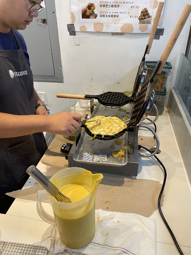 As the egg-waffle chef lovingly (I’m assuming) spread the Portuguese egg tart filling into the waffle iron, I was already drooling.