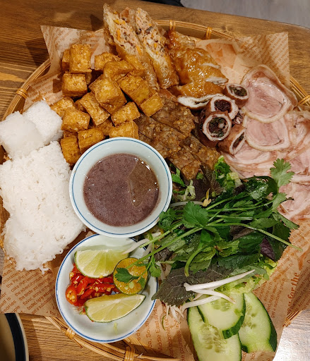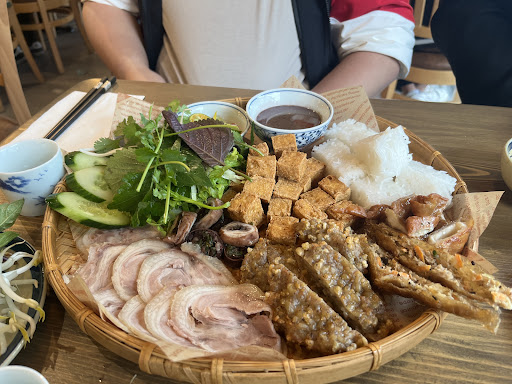 Phở tái lăn was decent; the broth wasn’t very flavorful, but the rice noodles were authentic. Cơm má heo ngũ vị was disappointing. The rice was clumpy, the portion of pork was too small, and while the fish sauce was okay, the accompanying soup was bland. Bún đậu mắm tôm was the worst. It cost $49 for a surprisingly small portion. We’ve ordered this dish elsewhere for half the price and double the portion. The pork hock was paper-thin, we only got three thin slices of blood sausage, the tofu was over-fried, and we received just six small cubes of vermicelli. The shrimp paste was overly salty and sweet, even after we added lots of kumquat and lime to balance it out. They mentioned it was their first day and blamed the delays on problems with their cashier system. While that might explain some of the service issues, it doesn't justify the poor food quality or high prices. Despite being a soft opening, there were no discounts or complimentary items. Almost every main dish was over $18, which did not match the quality or portion size.