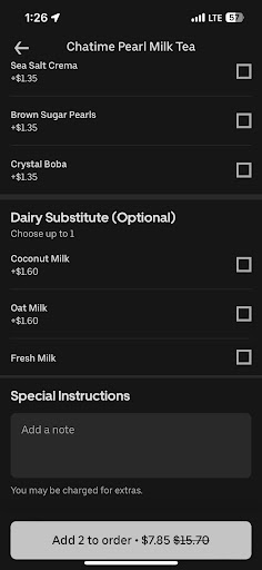 Read moreI ordered a buy one get one pearl milk tea on Uber eats. (April 14)