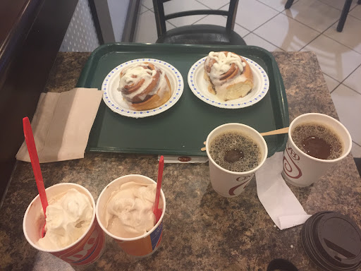 Read moreDON'T RISK IT, DON'T BUY FROM THIS PLACE! Me and my daughter came here for a little quick snack, because we were exhausted from shopping. And i'm VERY DISAPPOINTED. First, when me and my daughter was ordering from the menu, we got the mini cinnamon rolls, we asked if it was newly fresh. One of the worker said "yes all of them are fresh." So we went on with our purchase and bought it for 7 DOLLARS. We sat down, and called my husband to give it a try as well. When we all took a bite, THE CINNAMON ROLLS WERE DRY, STALE AND OBVIOUSLY NOT FRESH! Not only that, MY DAUGHTER GOT FOOD POISONING!!!! My poor daughter threw up and felt SICK. NEVER TRY GOING HERE! I rather go to the grocery store and buy a whole case of cinnamon...