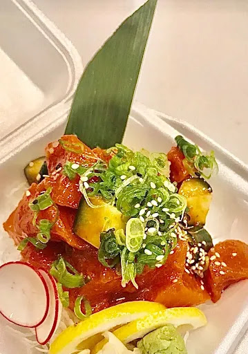 Once again, I recommend going for one of the box combos. For less than $9, you get the following: Your choice of teriyaki beef, teriyaki chicken, tofu (and a few more) with rice. 6 pieces of avocado or California rolls 2 pieces of salmon nigiri A bit of salad on the side Miso soup and tea