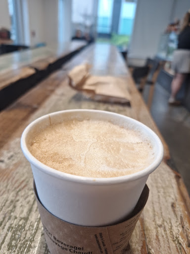 Read moreBuy a jalapeno cheddar muffin. You will be full but you will not be sorry. Great price for a muffin this tasty and of that size! Turkey Chorizo wrap is also delicious. All the wraps I've tried are good. All the muffins are good. Coffee is delicious! Aware of their challenges with tables and chairs, putting the beautiful wood lean table in the center was a great solution. Happy to support a Canadian owned and...