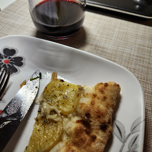Read moreAll depends on who works today. The ladies needed to put the oven temperature down. ITALIAN pizza does not mean completely burnt at the bottom. There was a string in the whole pizza we had. How come? Servers zero and zero. Not even a simple bye from my thanks. The tables were dirty and even dirtier with that looked dirty mop cleaning by one person in secs. what was that? No. Big no. You can't burnt the entire pizza bottom with all.black ashes and serve to anyone and I am still wondering why there was a plastic string piece in it 🤔 brentwood location serves different pizzas. Clean the ashes and set up the right temperature. At least, use clean cloths to each table to be mopped. ‐‐----‐-----‐---------------------------- Your slices are the best for me with good bottle of red wine after work. It's just well made pizza. When I order the whole pizza, the half will go to my freezer, so I tend to order slices. Yes, the guy recommended potato one and it was very good as he said. I will be a regular at this...